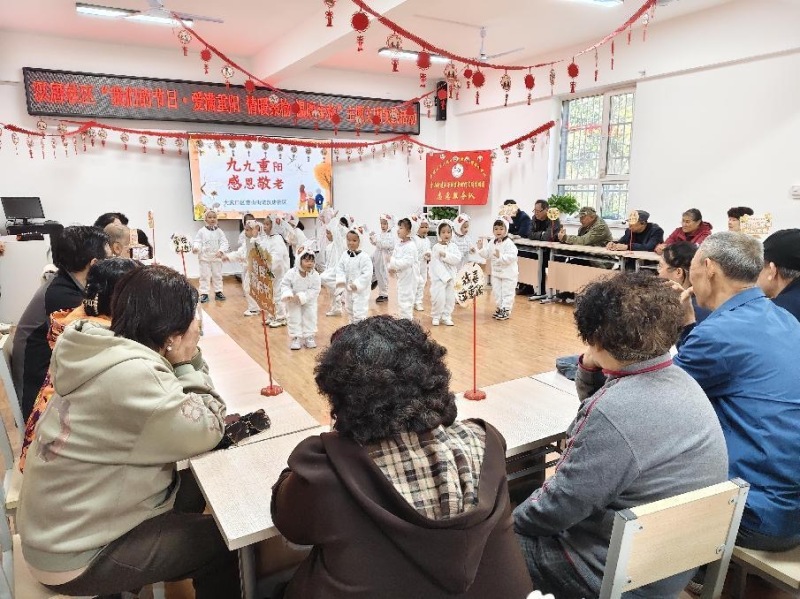 当天上午,汉唐社区组织辖区老人参与“与健走同行,与健康同在”的活动中。清晨的阳光透过薄雾,老人们齐聚公园入口,健步走路线的沿途风景宜人,老人们在行走中欣赏金秋的美景,感受大自然的气息。同时,志愿者们沿途讲解着重阳节的历史和文化,让健步走成为一种文化和知识的体验。健步走活动结束后,宝迪乐幼儿园的小朋友们为社区老人准备了《我不上你的当》《所向披靡》等舞蹈节目,并将他们精心准备的小礼物亲手递给在座的老人。此外,活动还设置了“重阳故事分享”环节,几位老人分享了他们的重阳故事,以及他们对重阳节的理解和情感。