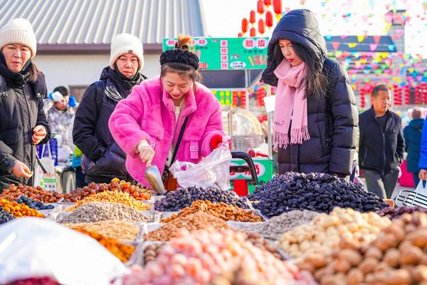 逛大集的市民在琳琅满目的干果摊位前挑选。