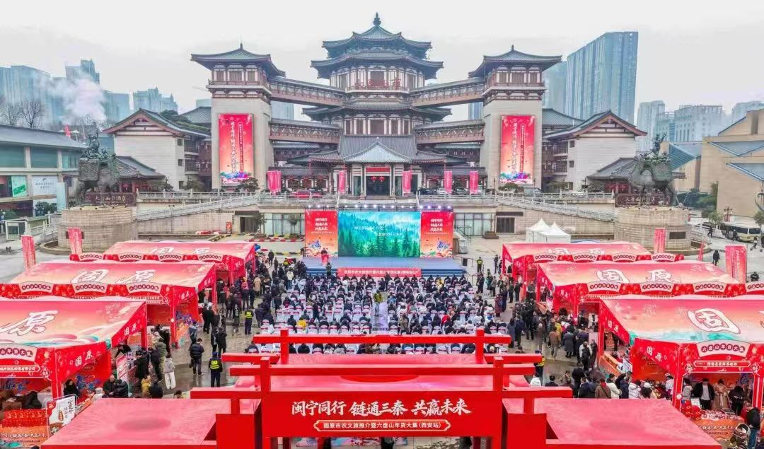 宁夏新闻网讯(记者 丁炜勇 李东 文/图)1月30日,2026年固原市农文旅推介暨六盘山年货大集(西安站)活动在西安大唐西市热闹启幕。隆德县精选12家优质农文旅企业携县域特色农产品、道地中药材、康养文创等百余款好物精彩参展,全方位展现隆德生态之美、产业之兴、文化之韵,成功搭建起隆德与西安两地交流合作、共赢发展的坚实桥梁。