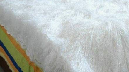 2、品种范围与特定要求:必须是在盐池县境内生产的二毛裘皮,盐池滩羊二毛裘皮纤维较细而柔软,有髓毛平均细度为26.6微米,无髓毛为17.4微米。两者的细度差异不大。毛被纤维类型数量百分比:无髓毛占15.3%,有髓毛占84.7%;其重量百分比为:无髓毛占15.3%,有髓毛占84.7%。毛纤维类型和密度与羔羊日龄有关,初生时绒毛含量少,随着日龄的增长,绒毛含量也在增加。二毛裘皮保暖性良好,并且有髓毛与无髓毛比例适中,不易毡结。二毛皮皮板弹性好,致密结实。鞣制好的二毛裘皮平均重为0.35千克。一般8-10张,重量2千克左右;74-80厘米长的皮衣需皮5-6张,比较轻便。