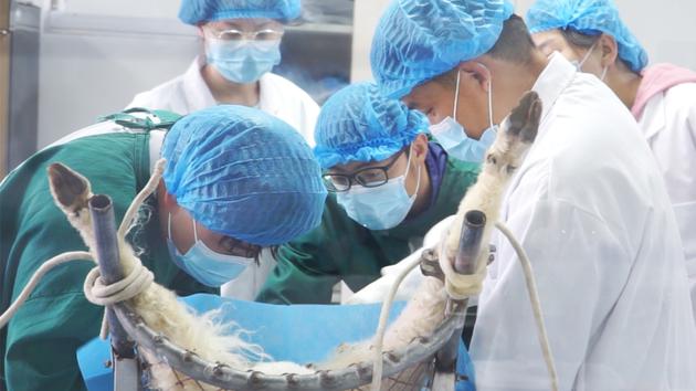 西北农林科技大学羊遗传改良与生物育种创新团队在进行技术攻关。