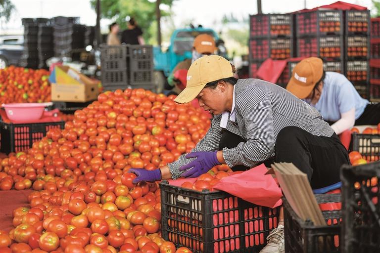 西红柿挑选严格,要求个头均匀,不能有磕碰和斑点。