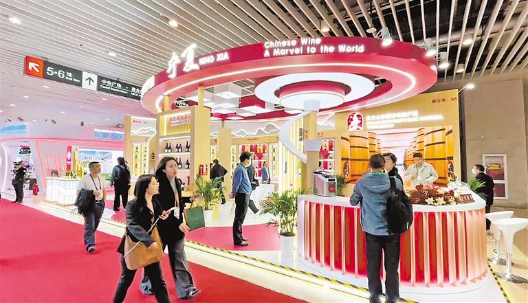 11月5日,第七届中国国际进口博览会在上海开幕。宁夏在本届进博会人文交流展区设立了108平方米的葡萄酒综合展,以“中国葡萄酒,当惊世界殊”为主题,设置了品鉴区、国礼区、企业展示区,邀请了保乐力加贺兰山酒庄、银色高地酒庄、贺兰红酒庄等贺兰山东麓葡萄酒产区的15家葡萄酒企业,展示了130余款具有地方特色的葡萄酒产品。