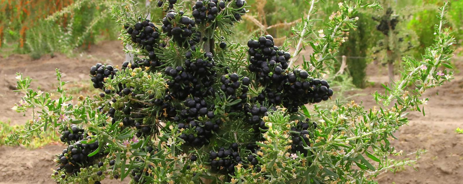 国家枸杞种质资源圃保存的黑果枸杞树。