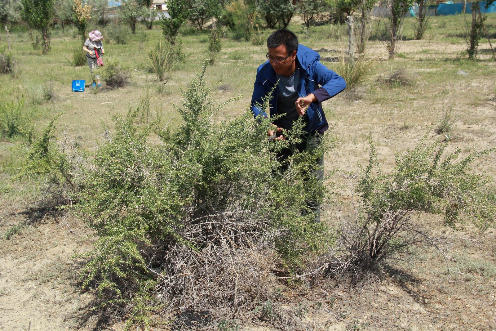 项目组成员在甘肃酒泉收集野生黑果枸杞。