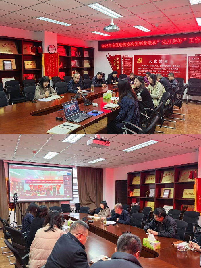为统筹推进2025年全区动物疫病防控工作,确保动物疫病强制免疫与“先打后补”工作措施落到实处,12月20日,自治区动物疾病预防控制中心组织召开全区动物疫病强制免疫和“先打后补”工作政策解读视频会。对《2025年全区动物疫病强制免疫工作方案》和《关于深入推进动物疫病强制免疫“先打后补”工作的实施方案》进行深入解读;并对“宁夏牧运通”平台“先打后补”模块操作流程进行说明讲解。