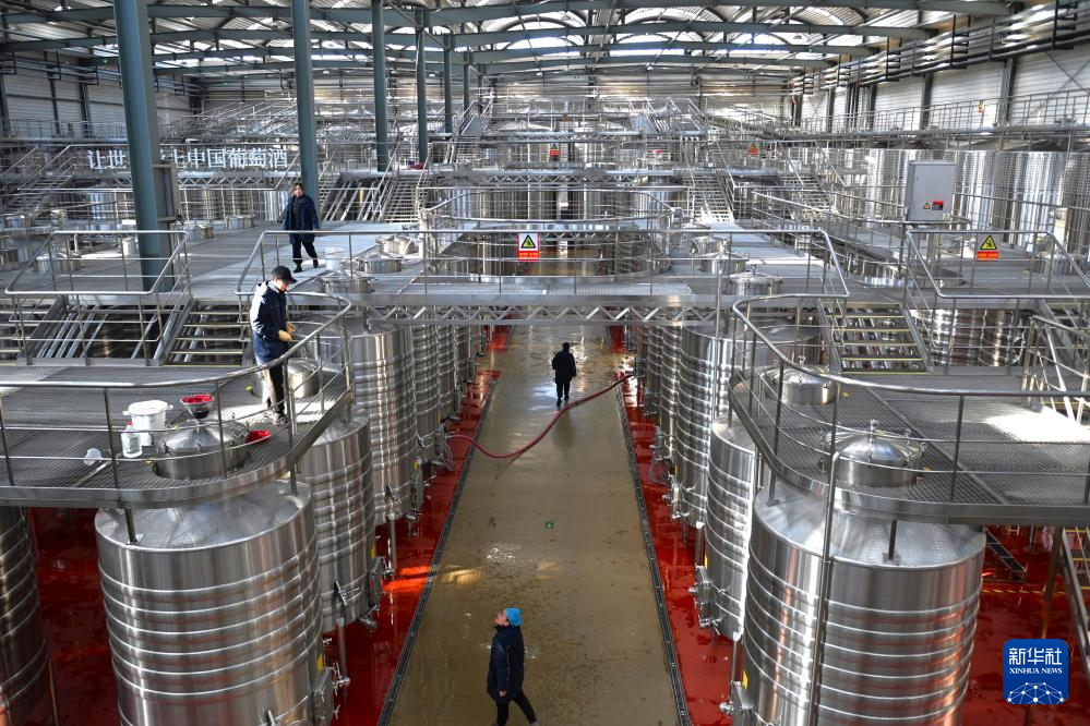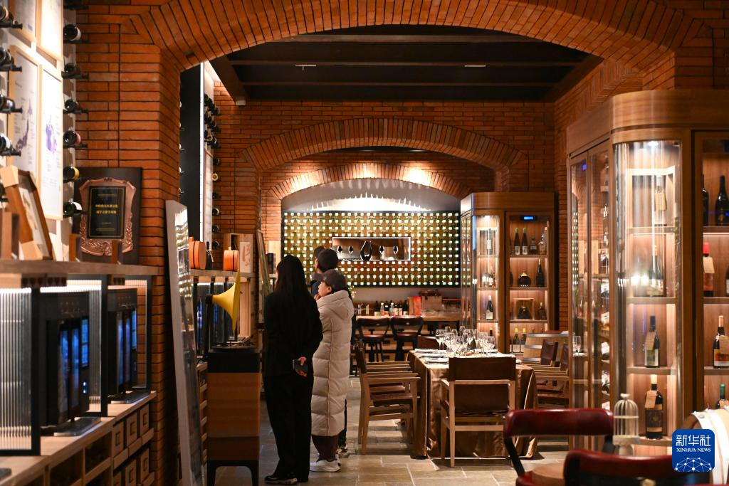 12月24日,游客在位于宁夏银川市的图兰朵葡萄酒小镇参观葡萄酒廊。 近年来,宁夏将葡萄酒产业和黄河滩区治理及生态恢复结合起来,建设了近200公里酿酒葡萄种植长廊,曾经的荒地变成了葡萄绿洲。截至2023年底,宁夏酿酒葡萄种植和开发面积60.2万亩,年产葡萄酒1.4亿瓶,综合产值超400亿元人民币。葡萄酒产业带动当地居民就业和文旅高质量发展。 新华社记者 毛竹 摄 11月27日,游客在位于宁夏青铜峡市的西鸽酒庄品酒。 新华社记者 毛竹 摄 12月24日,游客在位于宁夏银川市的图兰朵葡萄酒小镇游览。 新华社记者 毛竹 摄 11月27日,技术人员在位于宁夏青铜峡市的西鸽酒庄酿造车间工作。 新华社记者 毛竹 摄 11月27日,游客在位于宁夏青铜峡市的西鸽酒庄图书馆参观。 新华社记者 毛竹 摄 12月24日,游客在位于宁夏银川市的图兰朵葡萄酒小镇休闲。 新华社记者 毛竹 摄 10月23日,游客在位于宁夏银川市的志辉源石酒庄欣赏贺兰山景色。 新华社记者 毛竹 摄