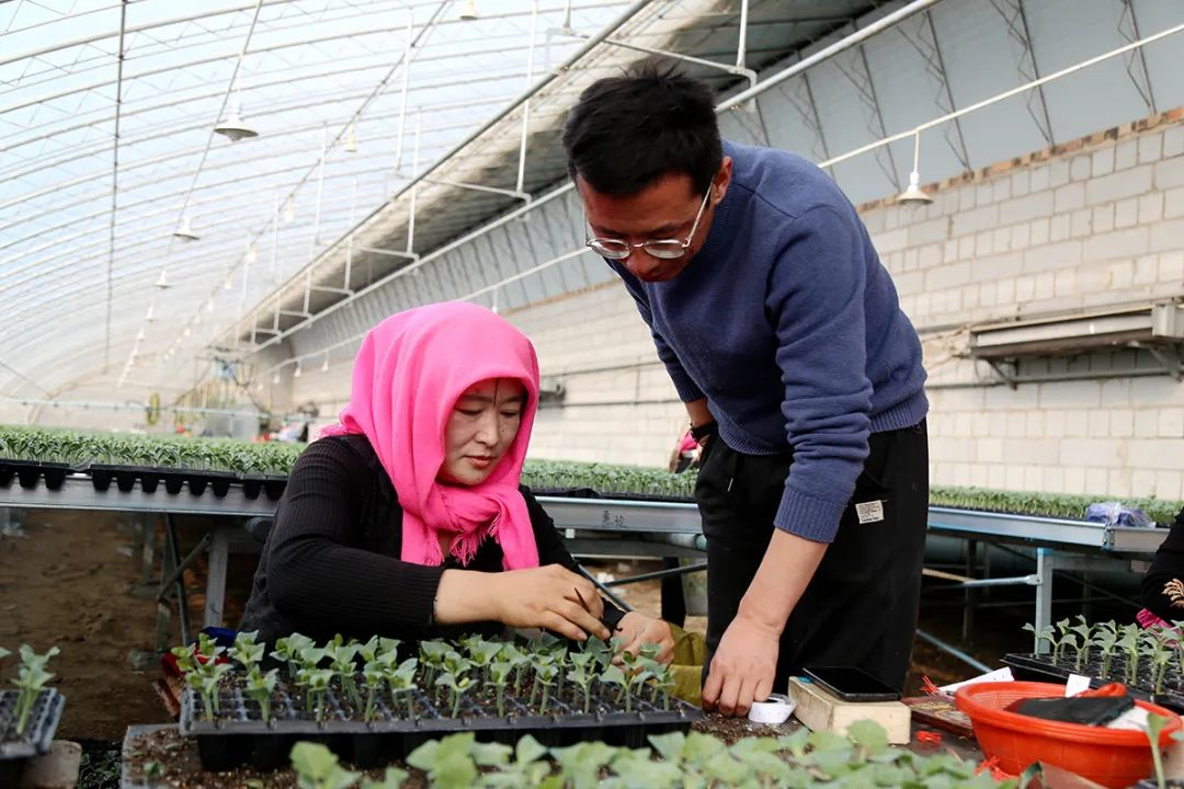 苏亚光是本土走出来的优秀青年大学生,2014年,他毅然放弃城市发展机遇,在家乡羊圈改造的实验室中开启了创业之路,凭借扎实的专业知识与不懈的实践探索,逐步攻克嫁接育苗技术难关。2020年,依托金凤区政府扶贫车间项目,他引进潮汐式苗床、温湿度联控系统,建成25栋智能化育苗大棚,将嫁接苗成活率提升至98%。2023年,他联合村党支部成立“创业园区”,将育苗技术拆解成57个标准化模块,通过“合作社+农户”模式,为126户村民提供技术培训与就业岗位,户均年增收3.6万元。如今,苏亚光创立的鸿盛育苗基地将“云储存”“物联网”等新质生产力引入温室育苗当中,发展为西北最大的智能化育苗中心,育苗量超2500万株,涵盖番茄、辣椒、西瓜等20余个品种,带动周边8000余亩设施农业升级,年产值突破 1500万元,成为宁夏首个实现“种苗出口”的农业合作社,为乡村振兴注入强劲动能。