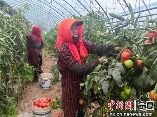 中新网宁夏新闻6月18日电 (记者 杨迪)走进宁夏青铜峡市陈袁滩镇袁滩村28栋“跨村联建共富”设施农业园区的温室大棚里,一株株芹菜青翠欲滴、一架架西红柿挂满枝头,村民杨冬梅正忙着采摘。“以前守着地发愁,现在家门口就能挣工资,年底还有分红,日子越过越有奔头!”杨冬梅笑着说。