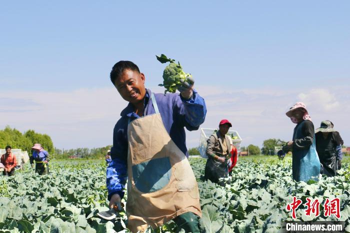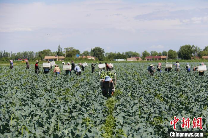 中新网银川7月2日电 (记者 李佩珊)进入7月,在中国(西部)冷凉蔬菜之乡——宁夏固原市原州区的各大种植基地,冷凉蔬菜中的“当家花旦”西蓝花迎来大面积上市。菜农穿梭在田间,手起刀落间,饱满紧实的西蓝花进入背篼。
