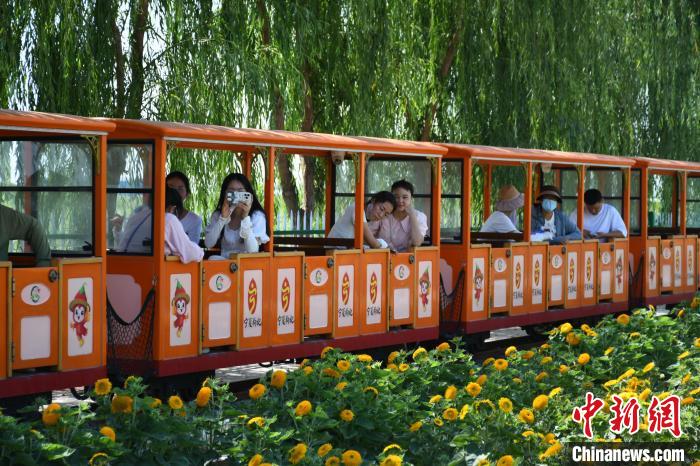 在农家乐里,游客徜徉花海。 宁夏文旅厅供图