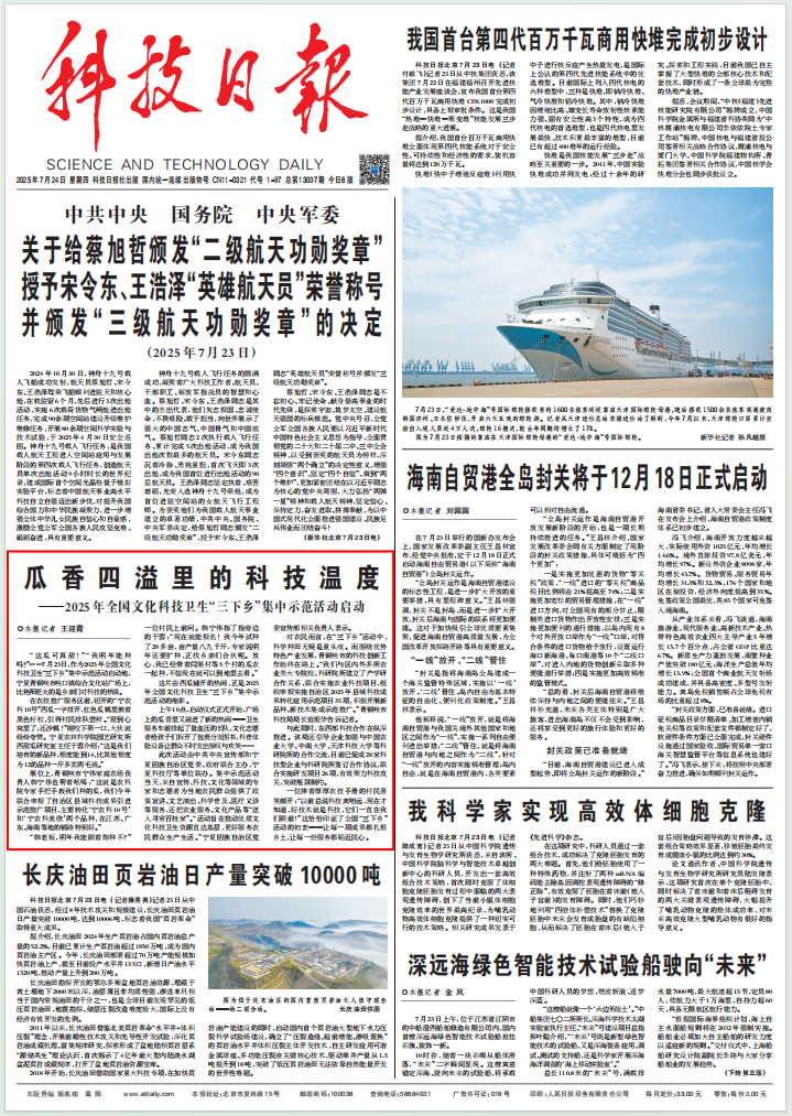 “这瓜可真甜!”“我明年能种吗?”……7月23日,作为2025年全国文化科技卫生“三下乡”集中示范活动启动地,宁夏青铜峡市峡口镇综合文化站广场上,比艳阳更火的是乡亲们对科技的热情。