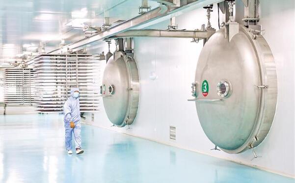 位于中宁县的百瑞源锁鲜枸杞数字化车间二期生产线,工作人员将枸杞鲜果送入真空脉动干燥仓。