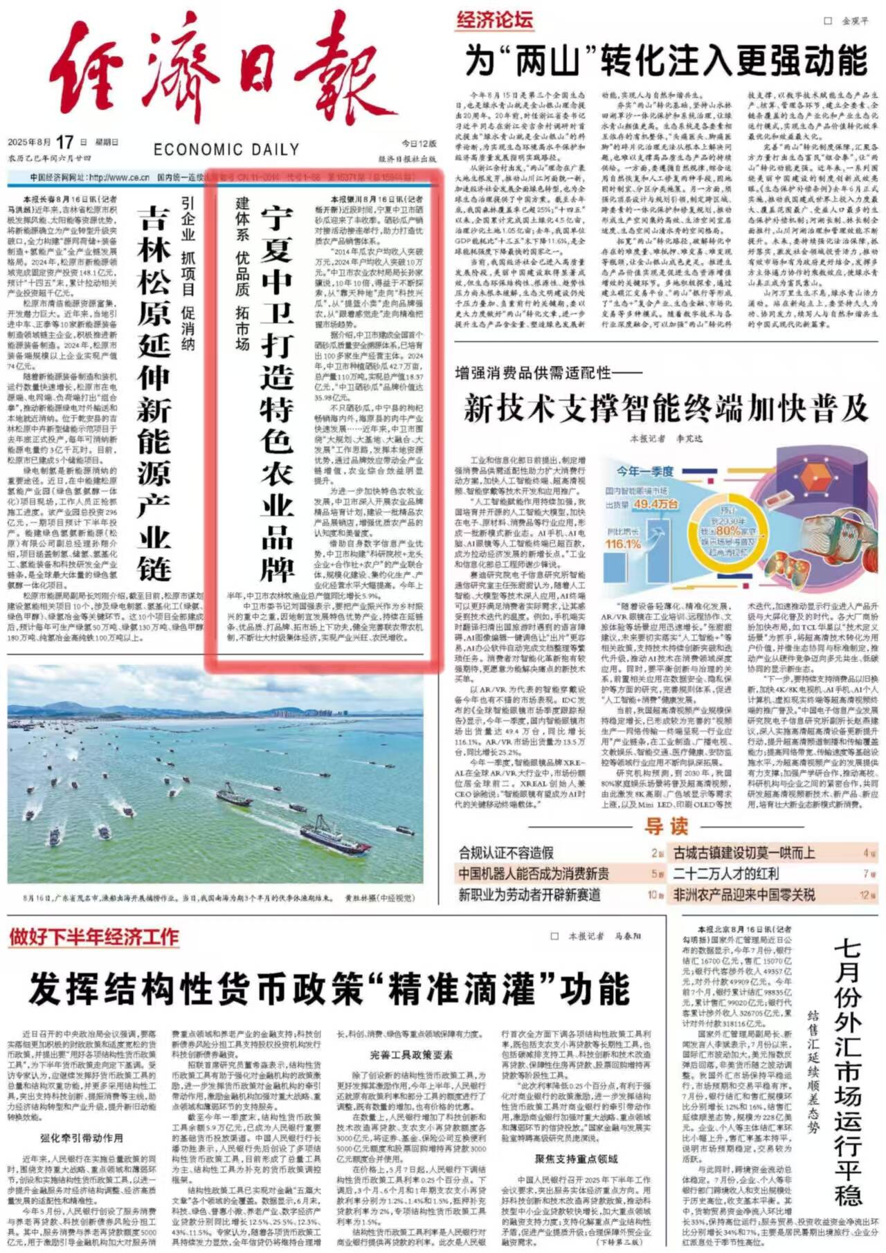 借助自身数字信息产业优势,中卫市构建“科研院校+龙头企业+合作社+农户”的产业联合体,规模化建设、集约化生产、产业化经营水平大幅提高。今年上半年,中卫市农林牧渔业总产值同比增长5.9%。
