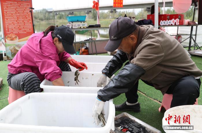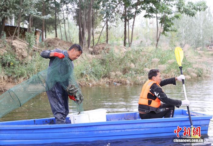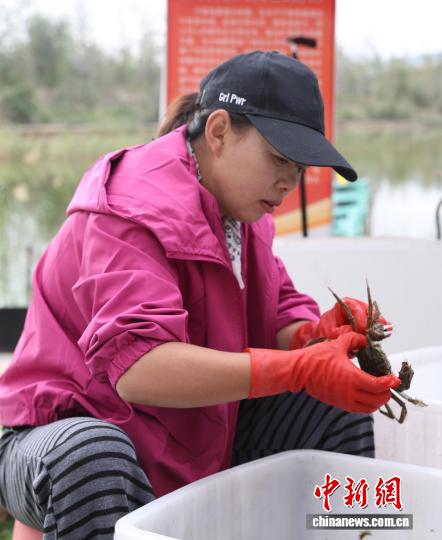 图为工作人员正在捕捞螃蟹。中新社记者 于晶 摄