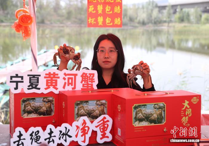 图为工作人员通过线上直播销售螃蟹。中新社记者 于晶 摄