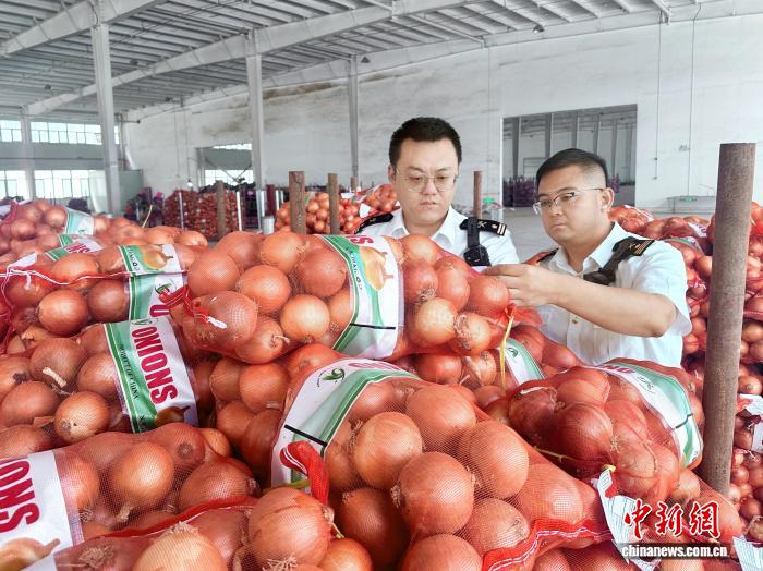 中新网银川9月18日电 (记者 李佩珊)记者18日从银川海关获悉,由宁夏一食品公司在银川综合保税区加工的56吨保鲜洋葱,经过银川河东机场海关工作人员查检后,现已踏上出口至泰国和马来西亚的旅程,这是宁夏首次向这两个国家出口保鲜蔬菜。