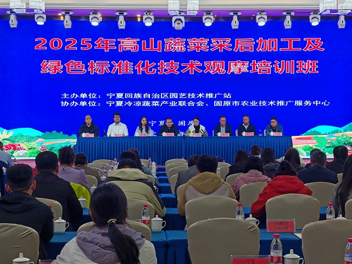 为进一步推广“高山蔬菜采后及加工技术研究与装备集成示范”课题研究成果,提高蔬菜绿色生产水平,提升加工转化增值能力,9月17日至19日,自治区园艺技术推广站联合宁夏冷凉蔬菜产业联合会、固原市农业技术推广服务中心在固原市举办2025年高山蔬菜采后加工及绿色标准化技术观摩培训班。全区27个市、县(区)农技推广中心主任、技术骨干、蔬菜新型经营主体负责人等110余人参加培训。