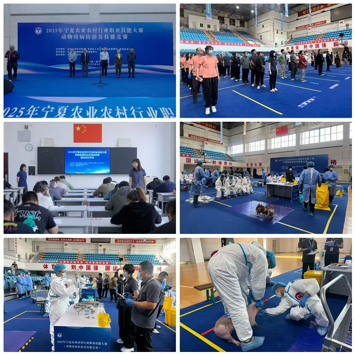 9月23日,正值第八个中国农民丰收节,2025年宁夏农业农村行业职业技能大赛动物疫病防治员技能竞赛决赛在银川举办。由自治区农业农村厅、人力资源和社会保障厅、总工会联合主办,自治区动物疾病预防控制中心承办,宁夏职业技术大学协办。来自全区5市、宁夏职业技术大学的6支代表队共30名兽医选手同台竞技。