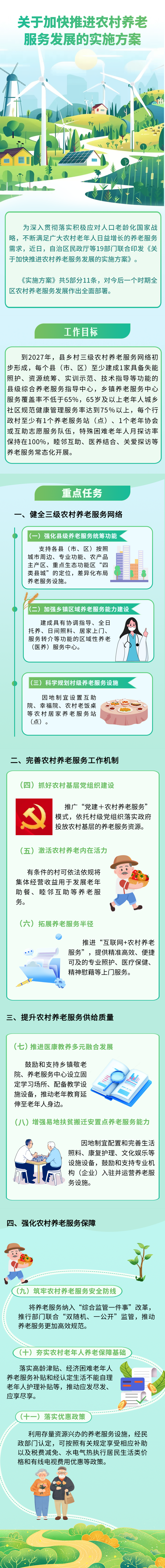 为深入贯彻落实积极应对人口老龄化国家战略,不断满足广大农村老年人日益增长的养老服务需求,近日,宁夏回族自治区民政厅等19部门联合印发《关于加快推进农村养老服务发展的实施方案》。
