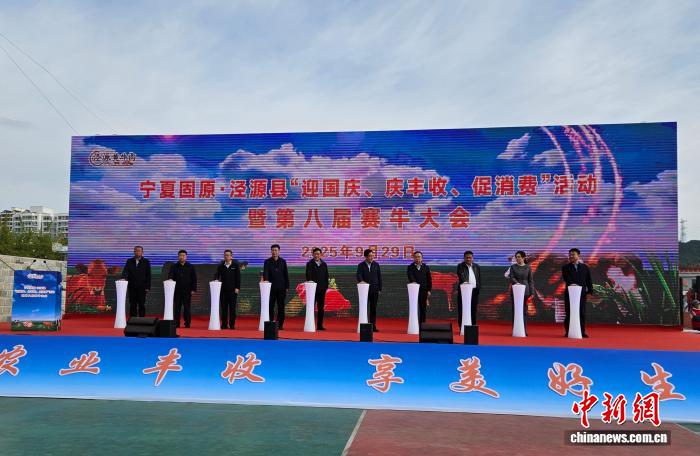 中新网固原9月29日电 (李佩珊 赵雅芝 鲁治平)9月29日,宁夏固原市泾源县“迎国庆、庆丰收、促消费”活动暨第八届赛牛大会开幕。大会以“会、展、赛、演、论、销”等多种形式展开,为当地群众与八方来客带来一场别开生面的节日盛宴,现场牛哞声、欢笑声、拍卖声交织成一片。