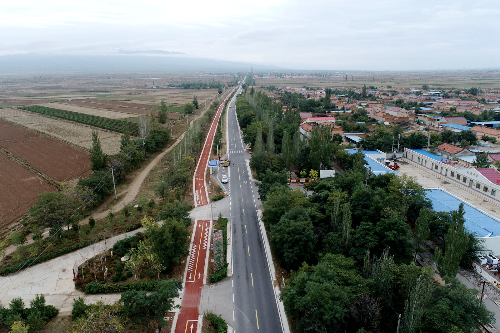 借中航路改造提升契机,沿线村庄同步推进人居环境整治,实施改厕、改厨、改院和绿化、美化、亮化工程,乡村颜值大幅提升。沿中航路进入红寺堡镇中圈塘村,路面干净整洁,绿树成荫,文化墙、公交站牌,还有白墙红瓦的村委会映衬着欣欣向荣的景象。