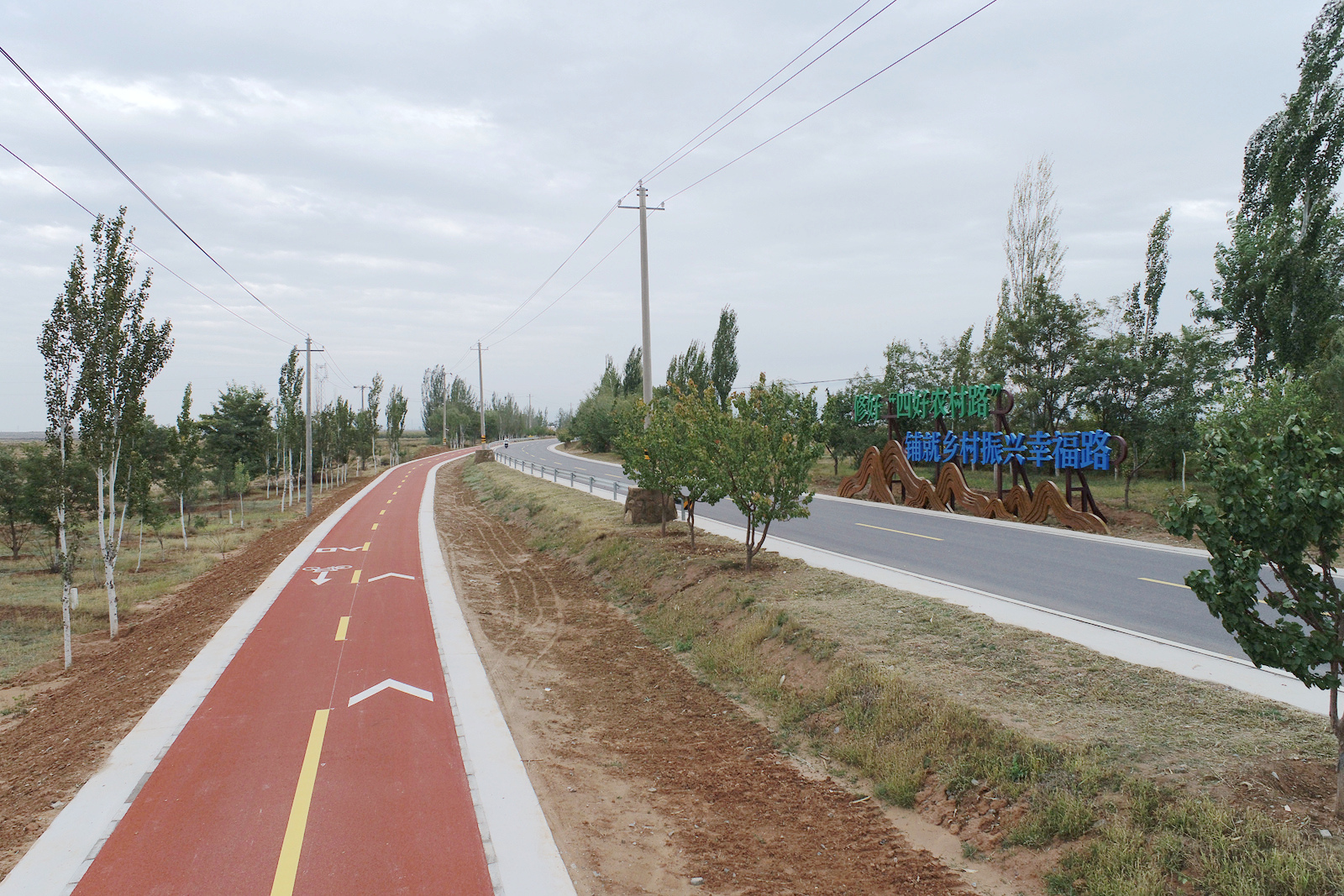 “中航路始建于2008年,原为沥青混凝土、水泥混凝土及砂砾混合型路面,2015年改建为三级沥青混凝土路面。2019年被评为宁夏最美农村路,2023年被中国公路协会评为全国美丽乡村路。既有道路沥青路面老化严重,无慢行系统,机动车与非机动车混行存在安全隐患,无公交站点,配套设施老旧单一等问题愈发突出,成为制约沿线产业发展的交通瓶颈。”红寺堡区交通运输局局长王毅介绍,在宁夏交通运输厅的大力支持下,红寺堡区扎实推进“四好农村路”高质量发展,2025年实施了中航特色公路提升改造工程。