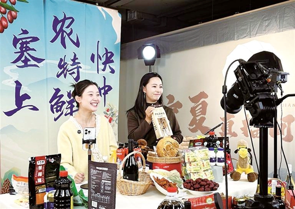 闽宁姑娘Benny(右)在直播间推介农产品。银川市商务局供图