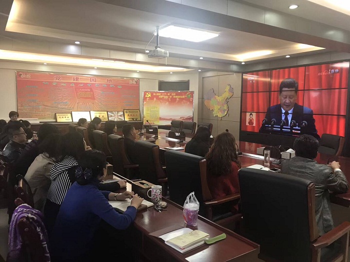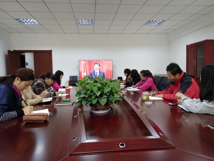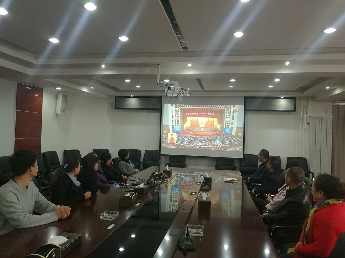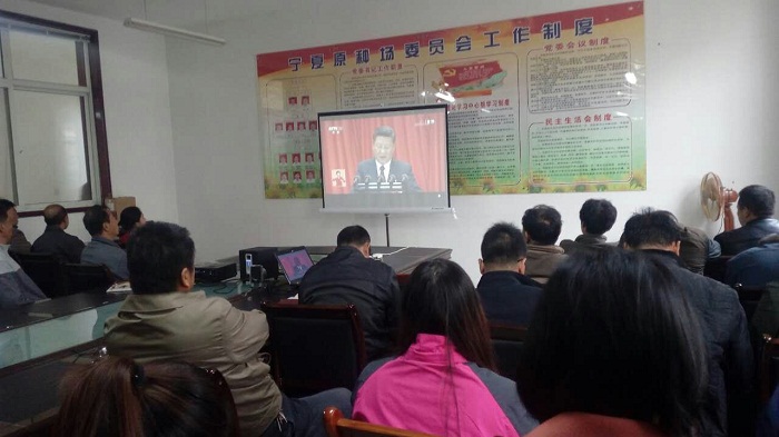 10月18日,农牧厅组织在银厅领导、厅机关各处(室、局)党支部和厅大楼办公的直属单位党委、总支、支部150多名党员干部职工集中收看中国共产党第十九次全国代表大会开幕会现场直播。