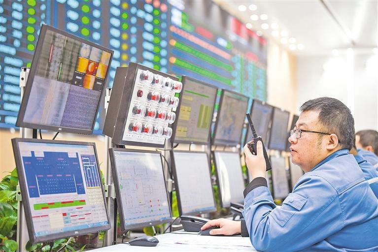 中国石化长城能源化工(宁夏)有限公司一号集控中心,工人全神贯注监看屏幕上跳动的设备运行情况。