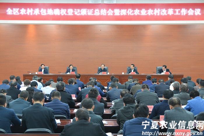 11月30日,全区农村承包地确权登记颁证总结暨深化农业农村改革工作会在银川召开,总结全区农村承包地确权登记颁证工作,安排下一步全区确权成果转化应用及农业农村改革重点任务。