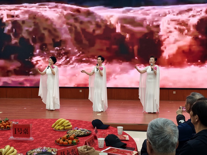 荣退仪式后,新春团拜会文艺表演精彩上演,老少同台、形式多样,展现团结活泼的团队文化,尽显宁夏“三农”人的团结进取与多才多艺。气势恢宏的开场舞蹈《锦绣大中华》,舞出塞上牧业的蓬勃生机;老干部合唱《我们的中国梦》,饱含银龄前辈的初心与热忱;原创三句半《贺兰山下话三农》,以幽默诙谐的形式讲述乡村振兴生动实践;诗朗诵《舌尖安·民生暖·畜牧兴》,深情诠释守护民生安全的责任与担当。舞蹈《上春山》、韵律操《你要跳舞吗》尽显青春活力,掌声与笑声此起彼伏,整场演出在大合唱《友谊地久天长》的温馨旋律中圆满落幕。