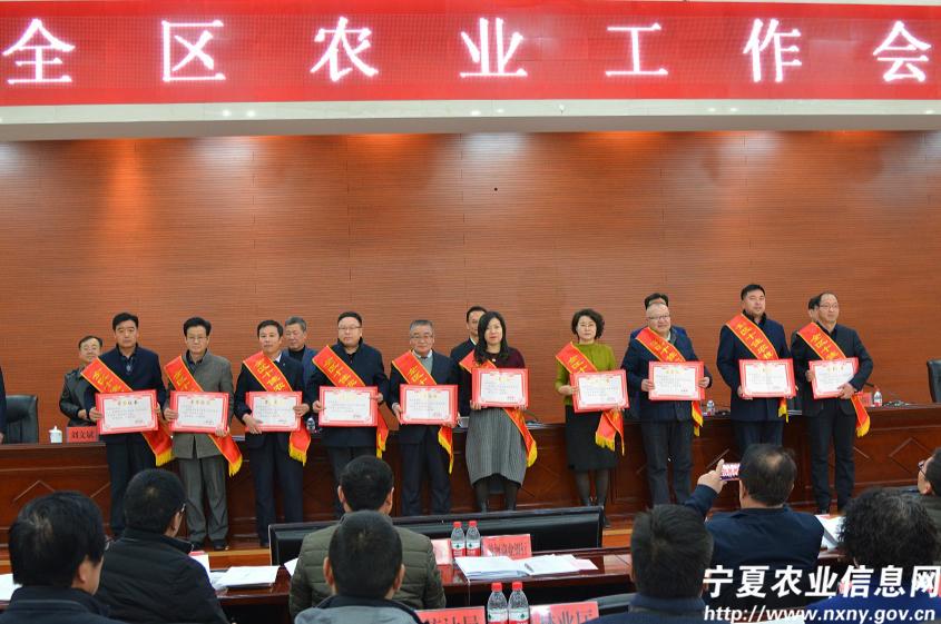 会议播放了2017年全区农业农村工作十大亮点专题片,传达了自治区党委常委、副主席马顺清同志对农业农村工作的要求,通报了全区农牧系统获得国家和自治区表彰情况,颁发了“全区十佳农民”、“全区十佳农技推广标兵”证书,安排部署了春耕备耕工作;贺兰县、平罗县、盐池县、泾源县、中宁县、沙坡头区6个县区代表作了交流发言。