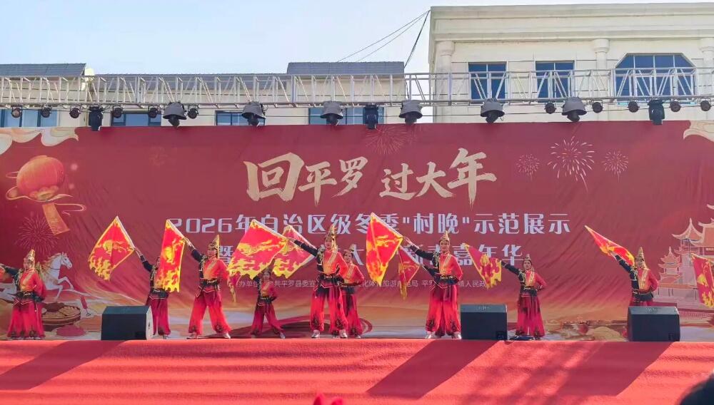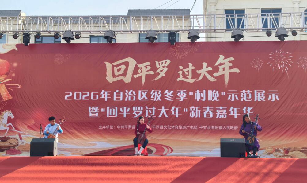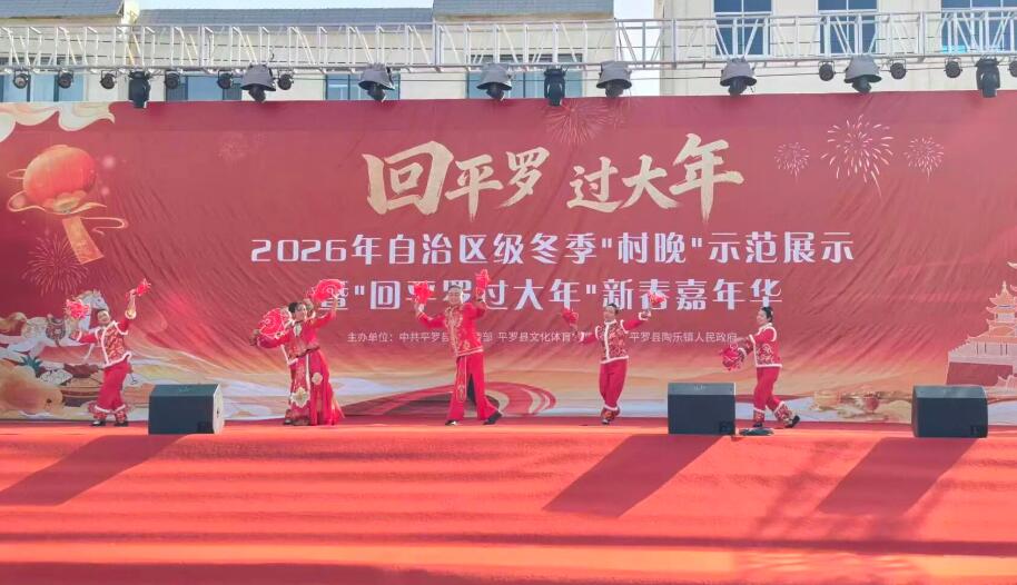 宁夏新闻网讯(记者 丁冬 文/图/视频)2月10日,2026年自治区级冬季“村晚”示范展示暨“回平罗 过大年”新春嘉年华,在平罗县陶乐镇文化广场精彩上演。民俗展演、文艺盛宴、年货市集、互动游乐、美食盛宴轮番登场,浓浓年味扑面而来,处处洋溢着喜庆祥和、热闹欢腾的节日氛围。