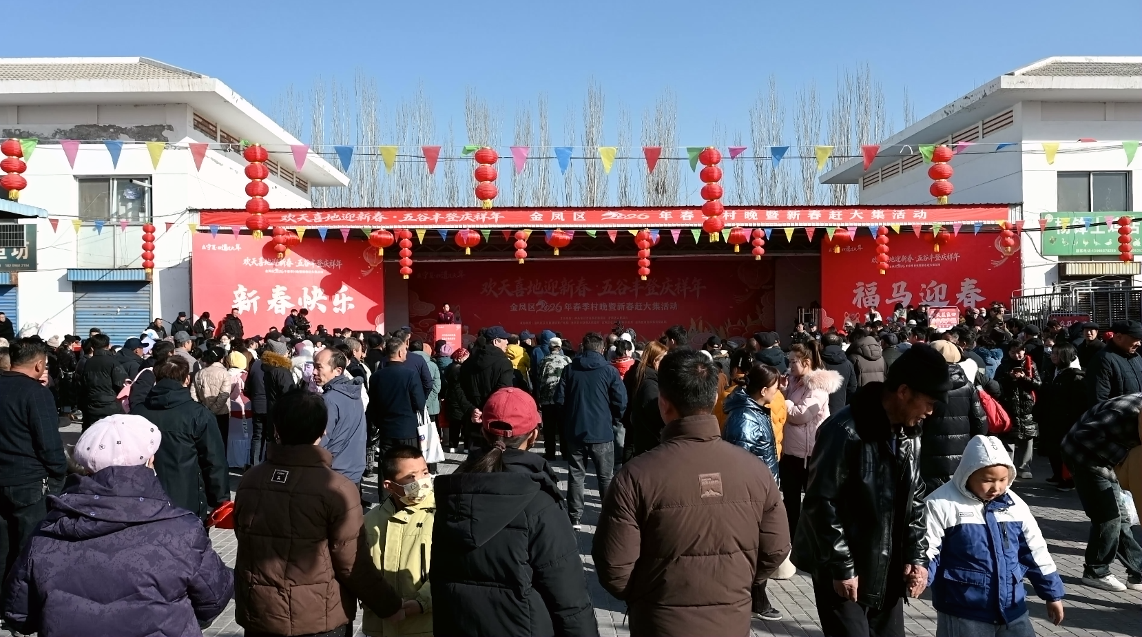 宁夏新闻网讯(记者 金文阳 文/图)2月11日,“欢天喜地迎新春·五谷丰登庆祥年”金凤区2026年春季村晚暨新春赶大集活动在丰登镇农贸市场正式启动。本次活动集文化展演、年货展销、民俗体验、便民服务于一体,以浓郁的乡土气息与喜庆的节庆氛围,为辖区群众送上新春暖意与浓浓年味,奏响金凤区乡村振兴与文旅融合发展的新春序曲。