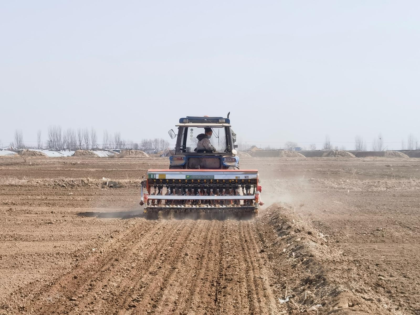 2月24日,贺兰县金贵镇银河村村民在播种小麦。目前,贺兰县已储备粮食作物良种11296吨、化肥17011吨,可投入拖拉机4500余台、农机具9000余台套,农资农机储备充足,可完全满足春耕需求。 宁夏日报报业集团全媒体记者 王若英 摄