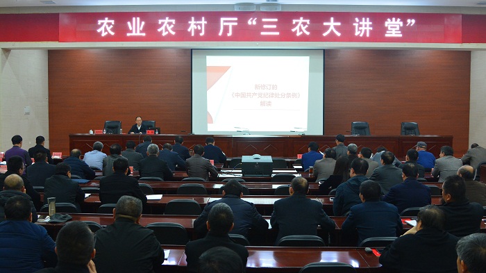 11月16日,自治区农业农村厅举办“三农大讲堂”,由自治区纪委监委驻农业农村厅纪检监察组组长专题解读《中国共产党纪律处分条例》,并组织厅副处级以上干部集中观看了纪律教育专题片《铁纪强军》。