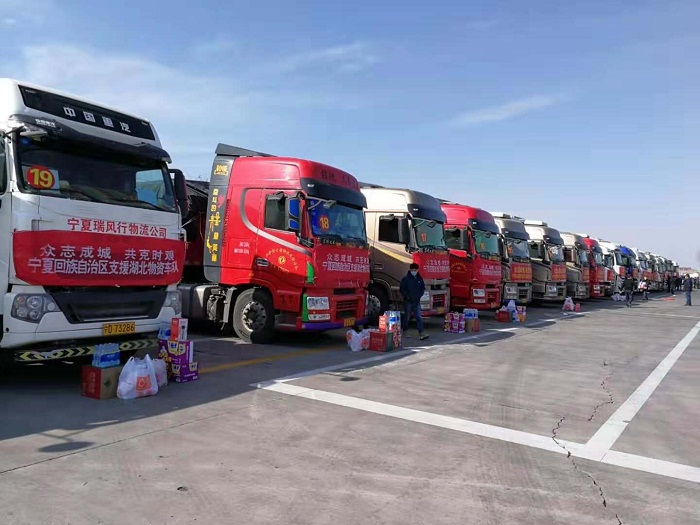 2月10日,我区采购调运的20车551.6吨275.5万元农产品,从固原市集中出发驰援湖北。农业农村厅办公室、机关服务中心组织调配方便面、瓶装水等生活物资,发放给运输人员和随队工作人员,保障车队顺利往返湖北。