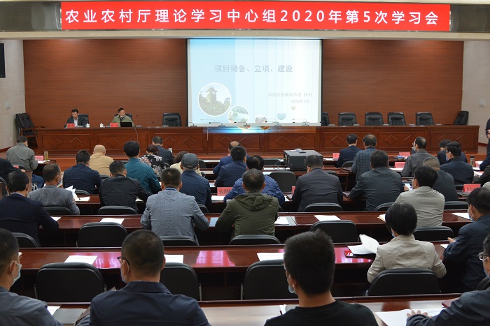 5月8日,自治区农业农村厅党组召开理论学习中心组第5次会议,认真学习贯彻自治区党委全区重大项目建设工作会议、农业农村部推进农业农村重大项目建设积极做好稳投资工作视频会议精神,对农业农村重大项目建设工作进行再动员、再部署、再加压、再鼓劲。会议邀请自治区发改委农经处就农业项目的储备、立项和建设进行辅导;三位厅领导和规划财务处、乡村产业处、市场信息处、农田建设处负责人围绕行业工作就如何谋划项目、包装项目、争取项目、落实项目作了交流发言。