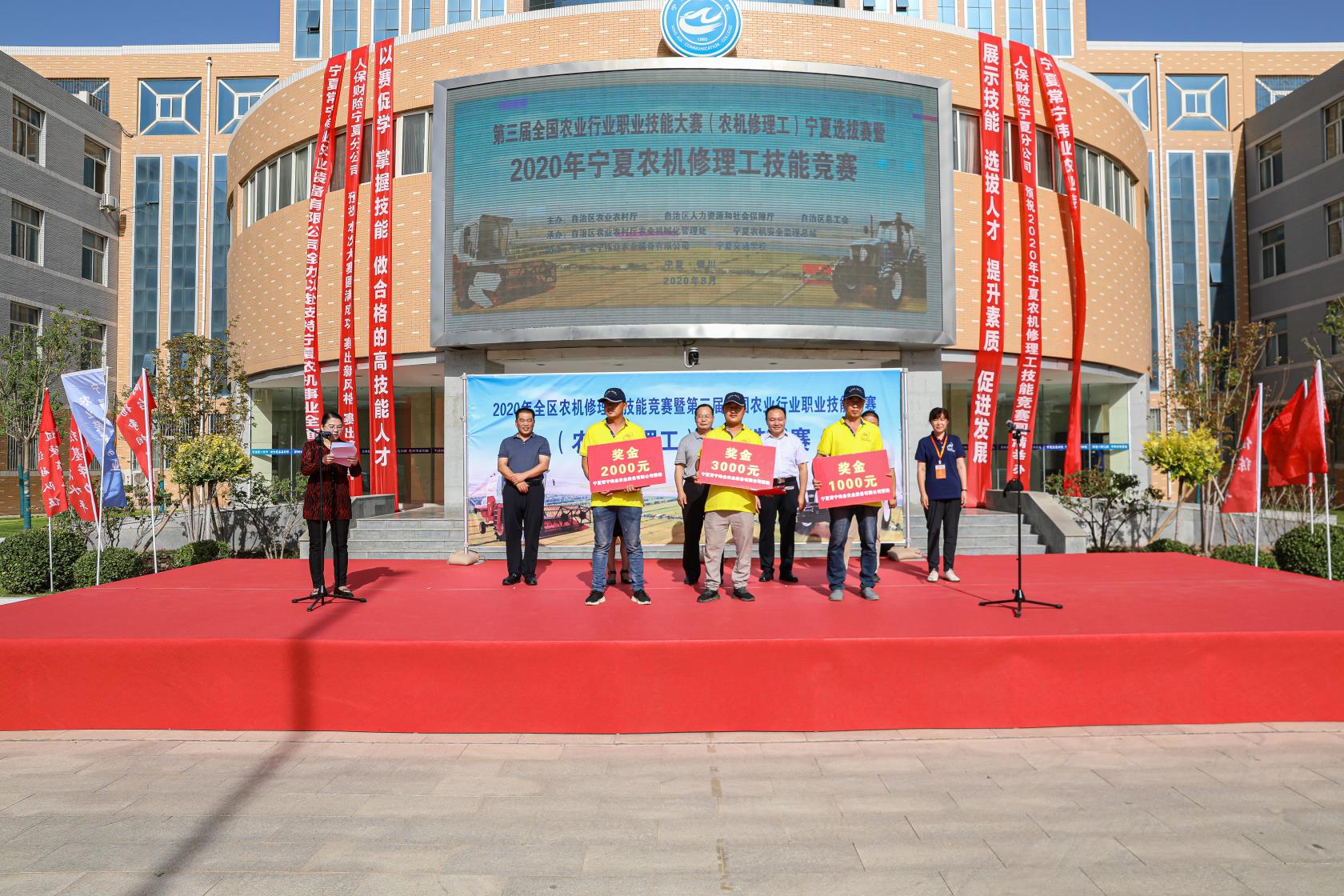 本次农机修理工技能竞赛共设置理论考试和实操考核两个大项:实操考核包括全喂入谷物联合收割机综合故障诊断与排除和拖拉机综合故障诊断与排除两个项目。经过2天的激烈角逐,来自石嘴山市代表队的陈佳龙、陈扬,银川市代表队的姚辉分别获得第1名至第3名的优异成绩,荣获“自治区农业技术能手”称号;中卫市代表队的徐鹏、田柒,石嘴山市的张欢荣获“自治区优秀选手”称号;石嘴山市代表队、中卫市代表队、银川市代表队荣获由宁夏赛区组委会颁发的“优秀团体奖”,3名裁判获得由宁夏赛区组委会颁发的“优秀裁判员”证书。个人第1名获得者,将由自治区人力资源和社会保障厅核准后授予“自治区技术能手”称号。