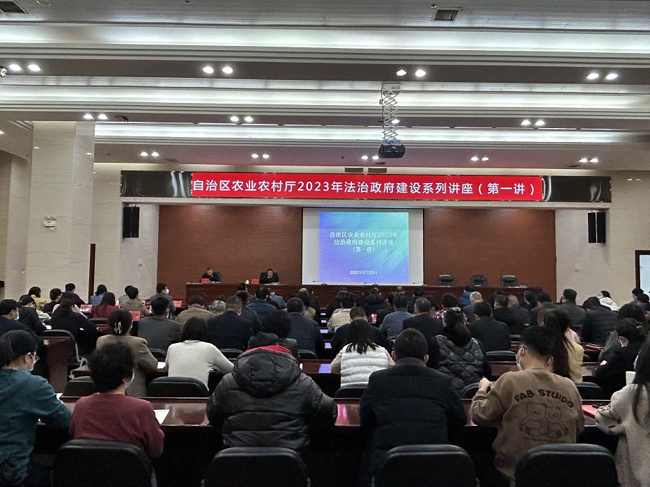 为深入学习党的二十大精神,全面贯彻自治区党委和政府及农业农村部深化“放管服”改革、开展数字政府建设的部署要求,不断强化农业农村系统领导干部责任担当、系统观念、工作效能,扎实推进各项改革举措按时高质量落实落地。2月23日,自治区农业农村厅举办“2023年法治政府建设系列讲座”第一讲,特邀自治区政府办公厅政务服务改革办公室陆生宏主任作了“深化‘放管服’改革 加快推进政府数字化转型”专题讲座。厅机关公务员、厅属事业单位副科级以上干部共150余人参加讲座。