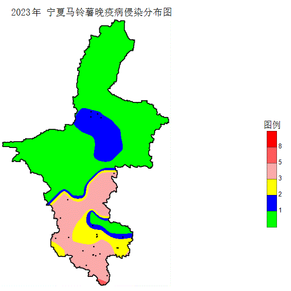 2023年宁夏各地马铃薯晚疫病侵染分布图