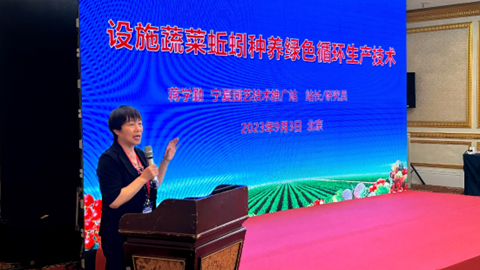 因近年来宁夏在蔬菜新技术推广工作中取得突出成就,宁夏园艺技术推广站研究员蒋学勤以“设施蔬菜蚯蚓种养绿色循环生产技术”为题现场作报告,介绍了宁夏冷凉蔬菜产业发展经验和绿色生产模式,宣传了宁夏冷凉蔬菜品牌,受到与会代表一致好评。