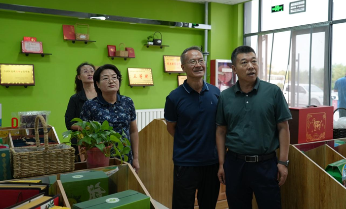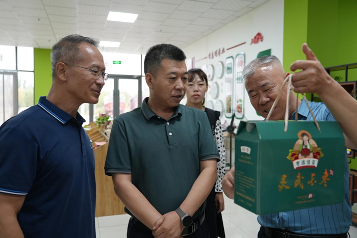 调研组深入临河镇灵武长枣示范村,实地观摩上桥村“一村一品”全国示范村的风采,行走在枣园中,切实感受“家在园中、园中有家”的独特魅力。调研组抵达灵武长枣大棚种植基地、电商直播基地以及灵武长枣博览园,通过专家讲解、现场观摩等形式,详细了解今年灵武长枣的种植情况及市场销售情况;并赠送了2023年最新编撰的《特色优质农产品品牌目录》,加强企业间的相互了解和共同进步。