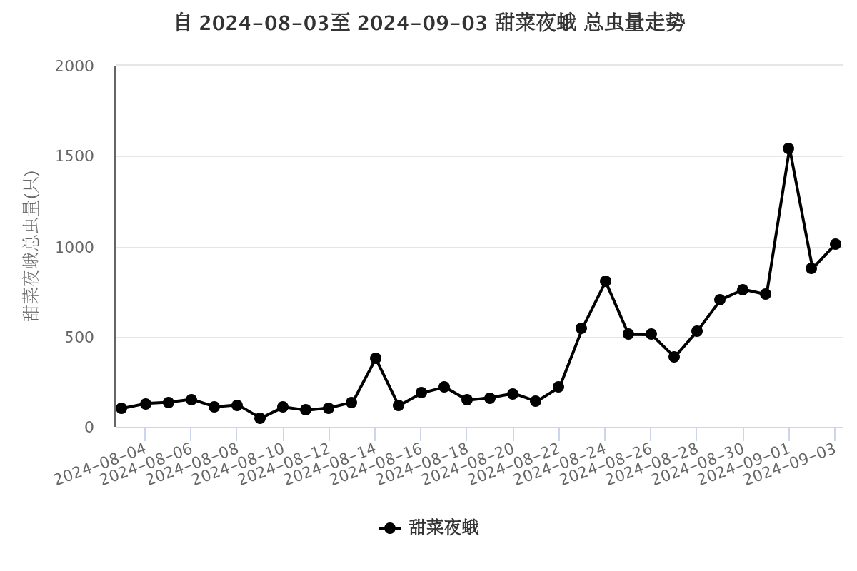 图1 2024年8月3日-9月3日甜菜夜蛾诱蛾量趋势图