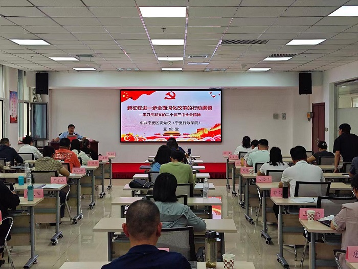 自治区党委组织部人才一处处长围绕“深入学习贯彻党的二十届三中全会精神,努力打造近悦远来的聚才环境”、自治区发展改革委地区发展处相关负责人围绕“自治区经济社会发展总体情况”等作了专题授课。通过聆听专题讲座,学员们深刻领悟习近平总书记历次来宁考察重要讲话精神,深入理解黄河流域生态保护和高质量发展先行区重大国家战略为宁夏践行使命担当提供的历史性机遇和战略牵引,进一步坚定学员们牢记总书记嘱托、永远跟党走的坚定信心和决心。