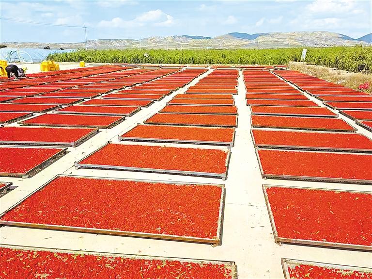 中卫市沙坡头区兴仁镇兴盛村枸杞晾晒。通讯员 白凤良 摄