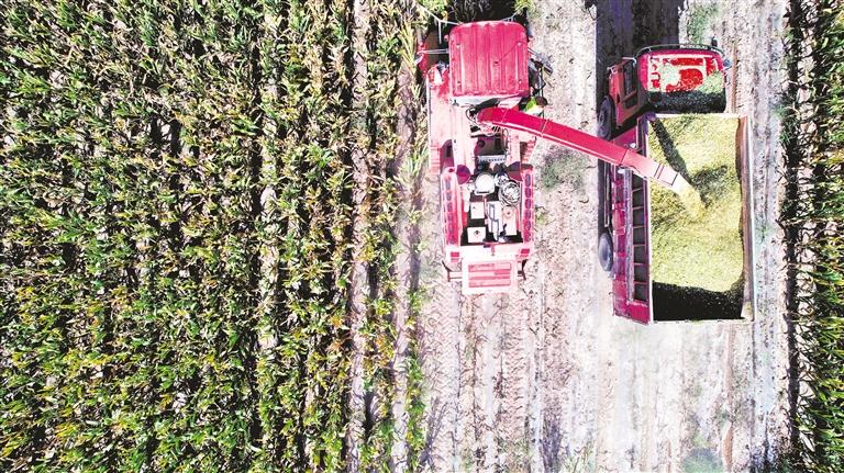固原市原州区三营镇大型农业机械收割玉米。今年,原州区共种植青贮玉米26万亩。记者 师越 实习生 王雷 摄