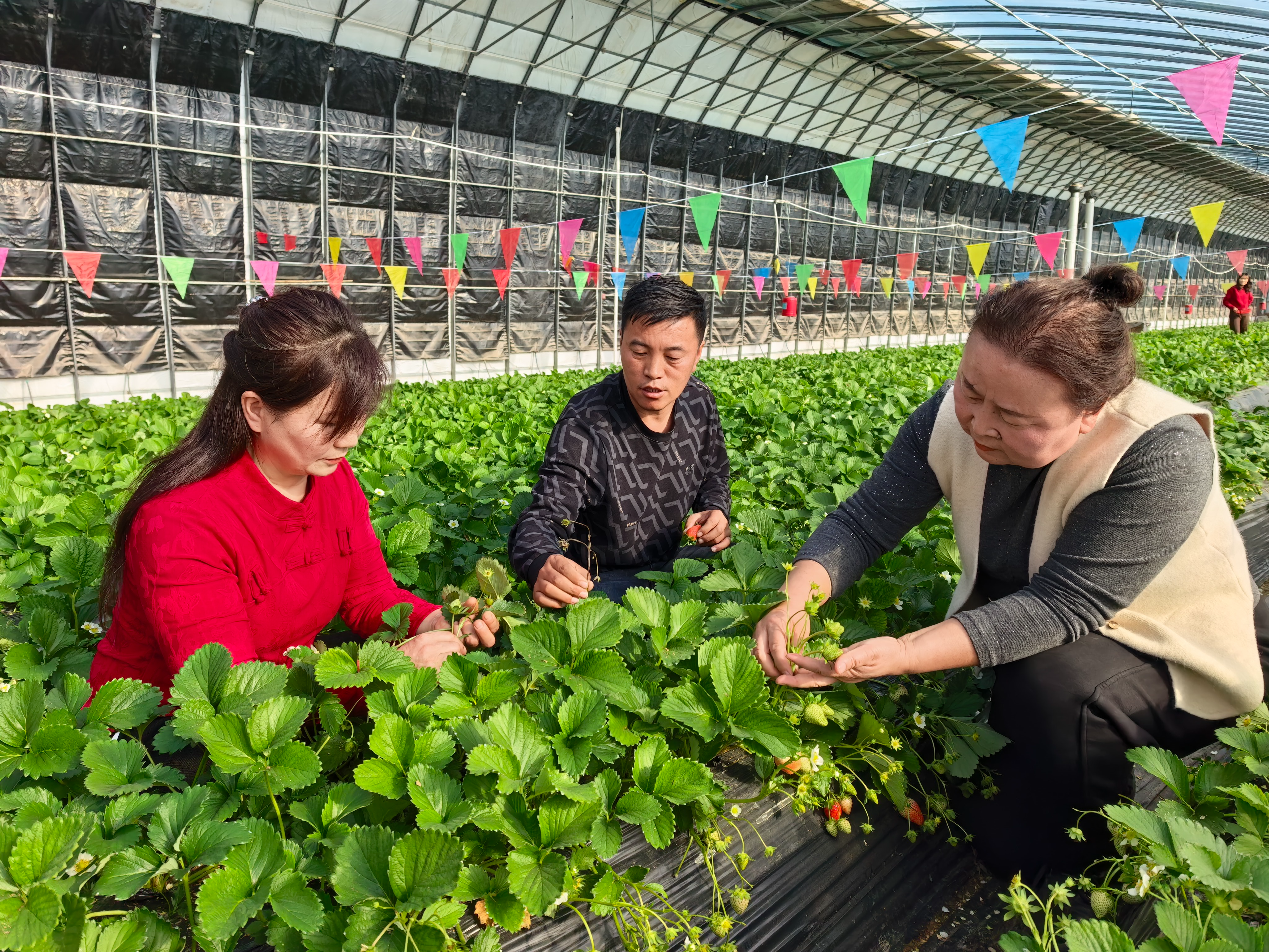 近日,平罗县宝丰镇新渠村草莓种植大棚内,技术员现场开展草莓种植技术管理指导,“手把手”传授管护技巧。近年来,新渠村与宝丰村深化支部联建,携手发展草莓、番茄等果蔬种植产业,以党建引领产业发展,持续壮大村集体经济,激活乡村发展新活力。记者 周丽华 摄