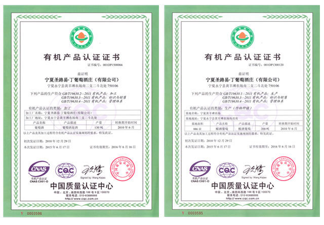 酒庄于2010年开始有机认证,2013年正式取得有机认证证书,成为我区首家取得该项证书的葡萄酒酿造企业。